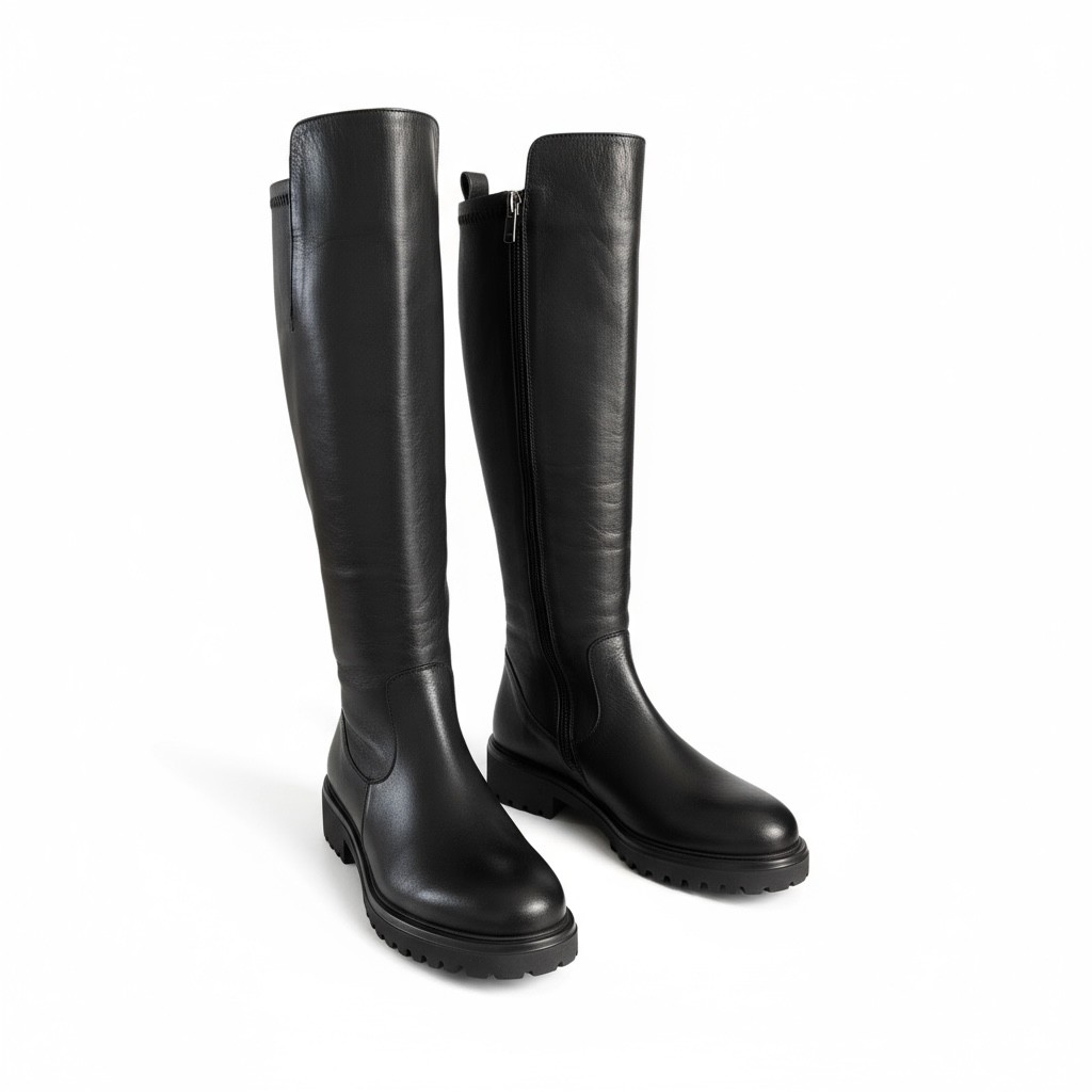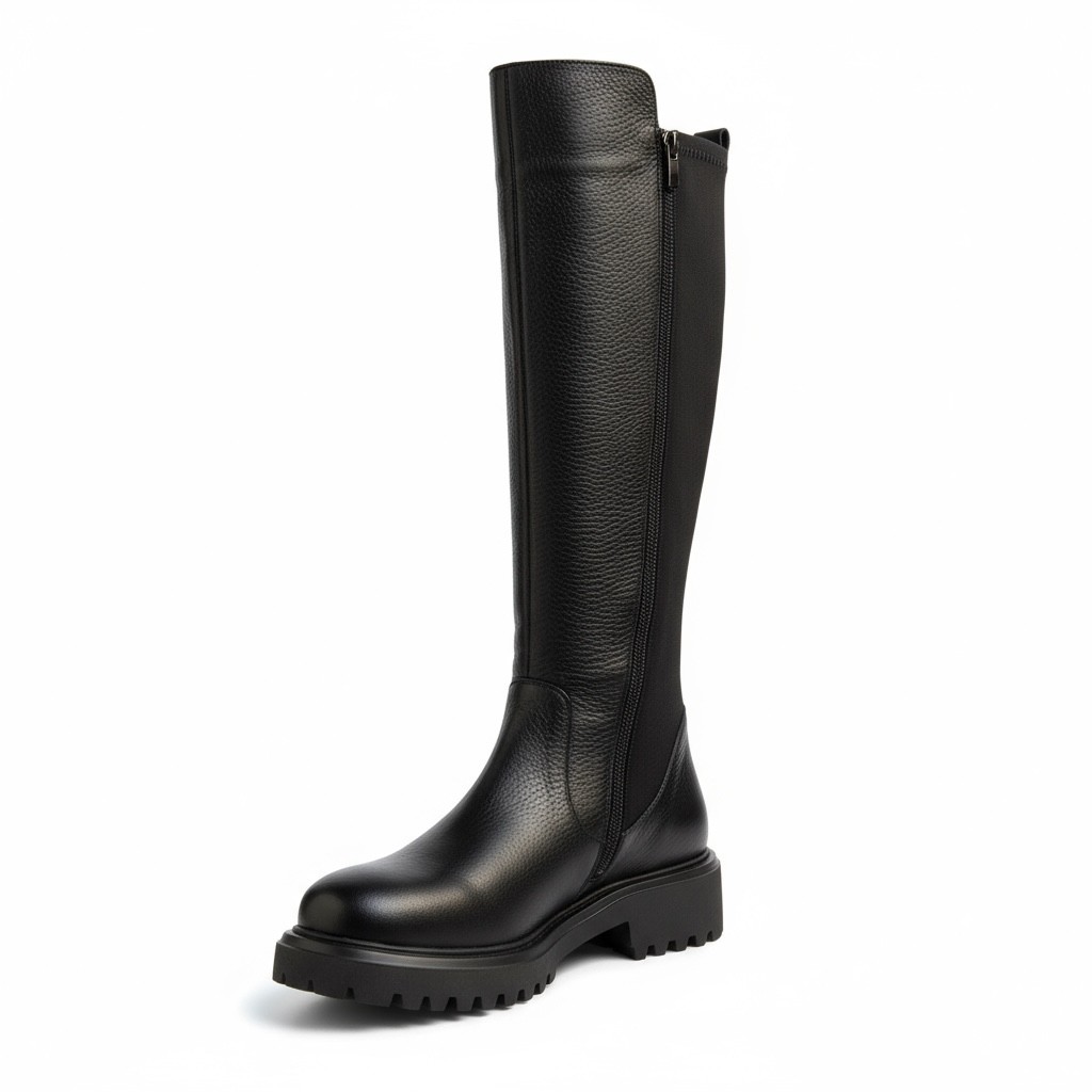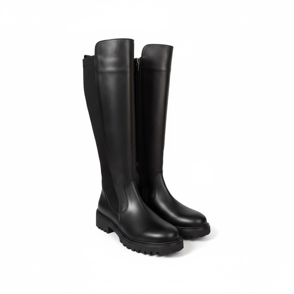 %100 Hakiki Deri Arkası Streç Dalgıç Kumaş Kadın Çizme
